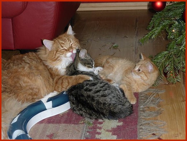 den großen Bruder bei Pflegekätzchen zu spielen.